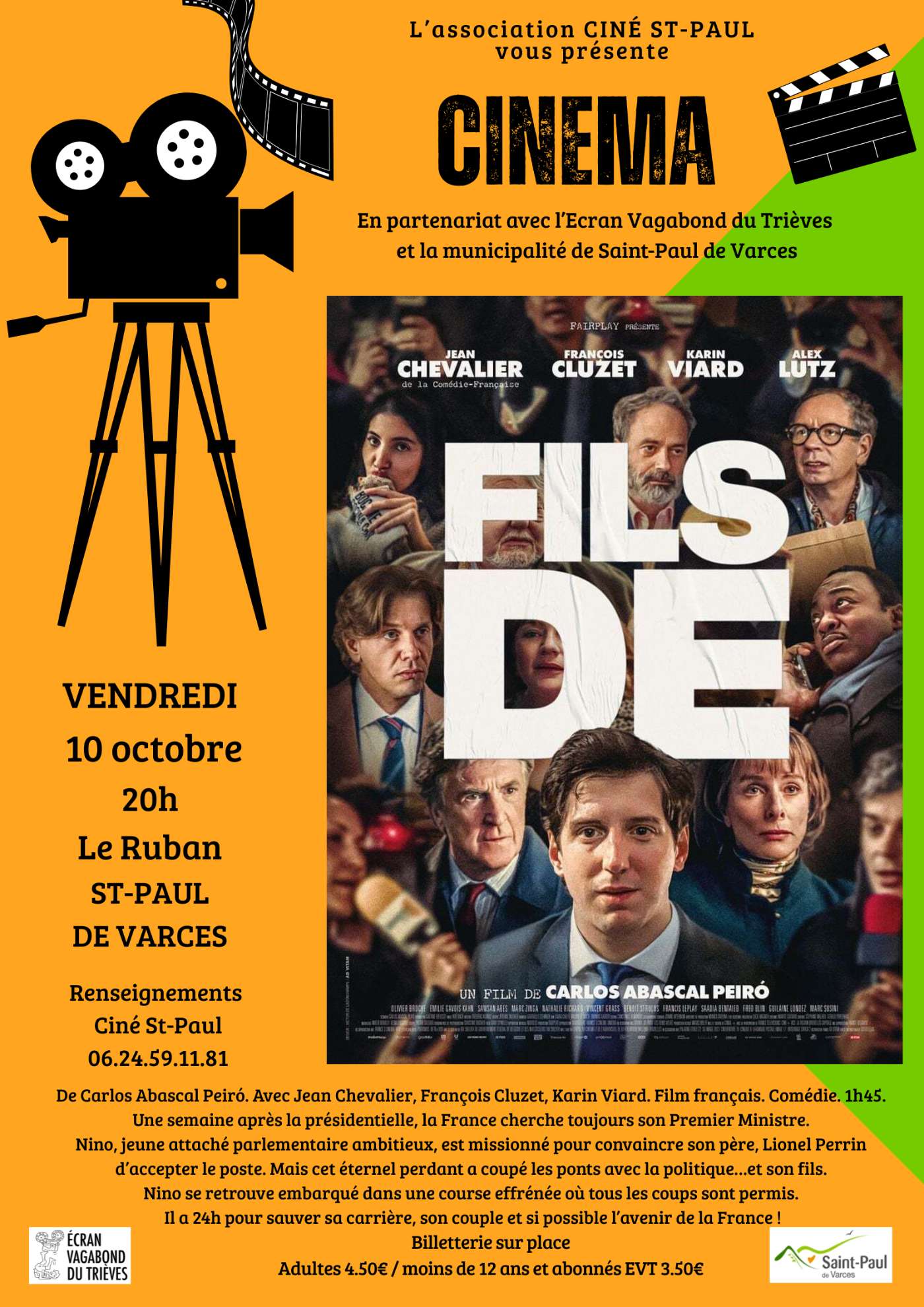SEANCES DE CINEMA Accueil > Actualités > SEANCES DE CINEMA 2 séances de cinéma avec Ciné St-Paul vendredi 10 octobre au Ruban. Plus d'infos : Agenda des Animations Voir toutes les actualités